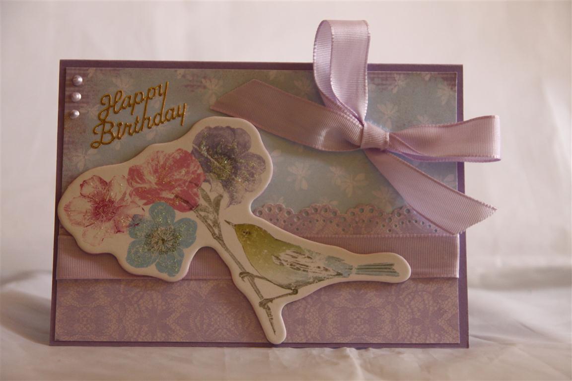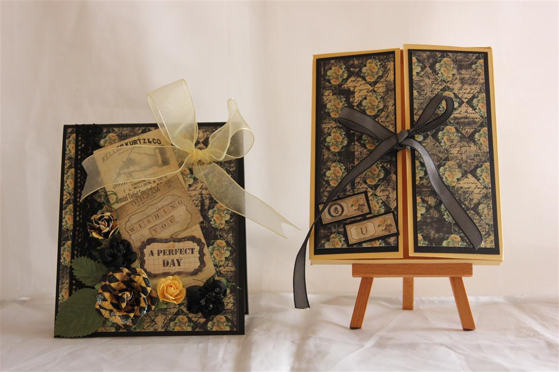 Here are the last two cards I made with prima Sun Kiss paper and chipboard pieces before I officially retired this collection! the bottom card uses the rest of the Prima bling ( I used bits of it on previous cards)and I punched a butterfly out of gold card with my Tim Holtz butterfly punch.Today i went into Forget-me-not florist at Hollywood plaza ( my local shopping centre) to buy flowers for Mum and Dads wedding anniversary, got talking to lovely lady there, and she is going to stock my cards!! I am off now to prepare a box for her, I will start off with a small amount and see how they go. Til tomorrow….