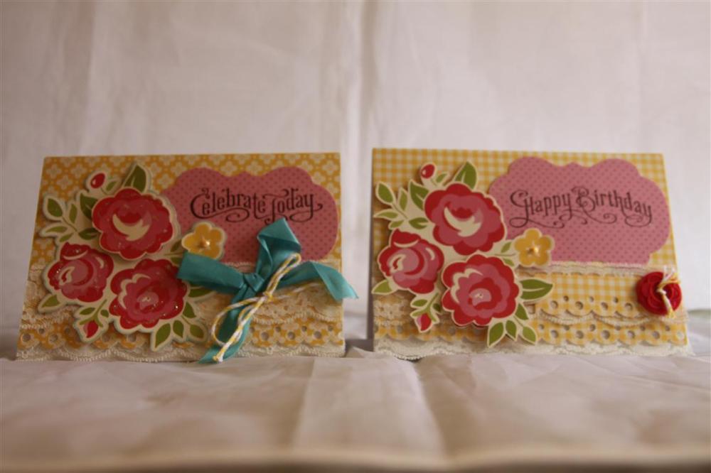 Here we are for our second post today. This is the last in my October Afternoon sidewalk series, which I wanted to finish today as I am eager to move on to the next…. These two cards also used the button, twine and seam binding that came in the matching Miscellany pack, and I used a spellbinder labels 14 to stamp my Stampin Up Perfectly Penned greeting stamp on to in choc chip ink.There is a little lace peaking through the layers, and I punched a lacy edge with my Martha stewart punch.So Hot here in Adelaide today – 40C ( thats 104F for my overseas visitors) Very hard to craft in this heat – My quick dry glue was drying before I could get anything stuck to it, my double sided tape went quite tacky, and parts of my body were uncomfortably stuck to my seat! It looks as though it is cooling down now, although that could be wishful thinking! Welcome to my new subscribers,I hope you all enjoy my card making journey as much as I do…. Til tomorrow….