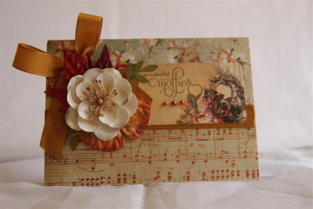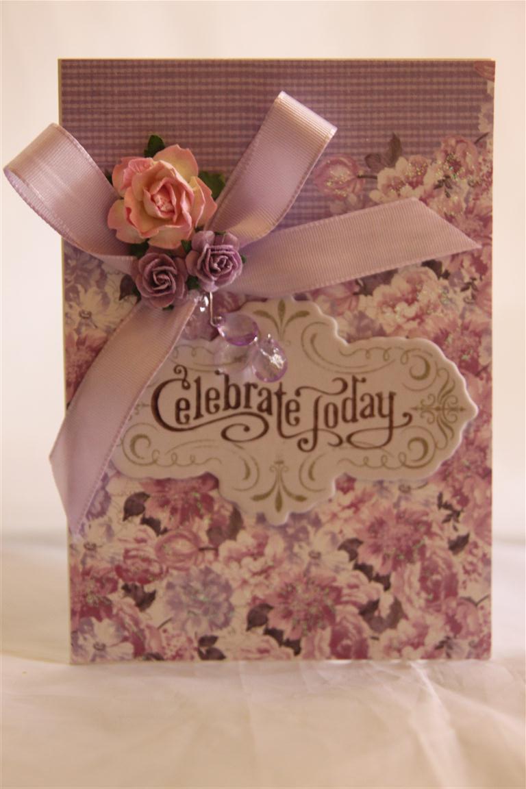 I have been making cards with this paper all week and I still haven’t wanted to move on yet – I think its because there are so many different colours in the collection. It is kaisercraft Sweet Nothings and here I have used the 6″ pad and a couple of 12 x 12 sheets. The flower and leaves are from Prima and I added a little ribbon as well. Til tomorrow…..