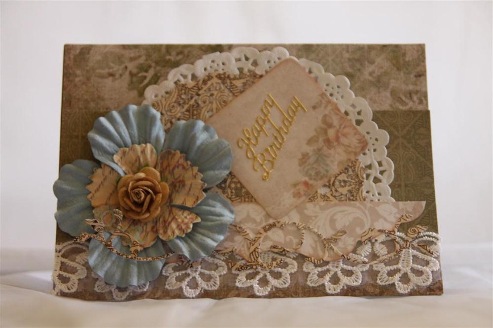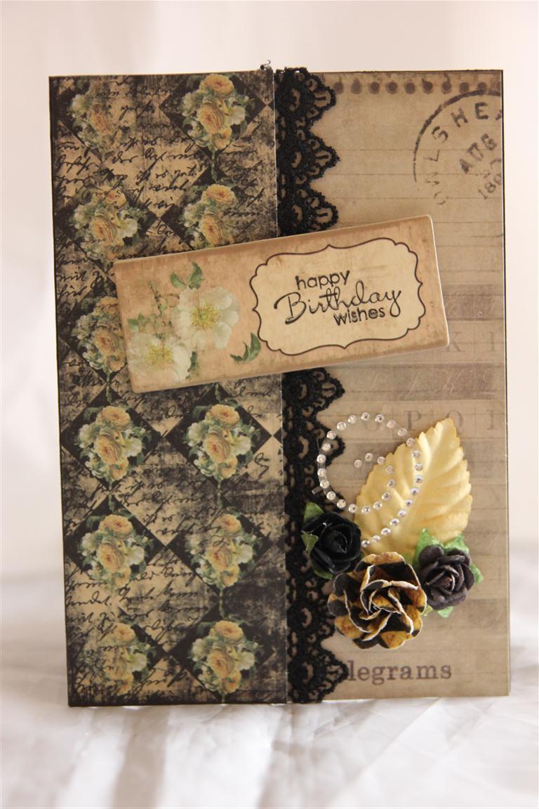 Today we are going to start a bit of a series using kaisercraft these days paper collection and the matching collectables. On this card I added prima flowers and some lace.I edged around the collectable die cut with some ranger tim holtz antique linen. shopping night tonight, so very quick post.. Til tomorrow….