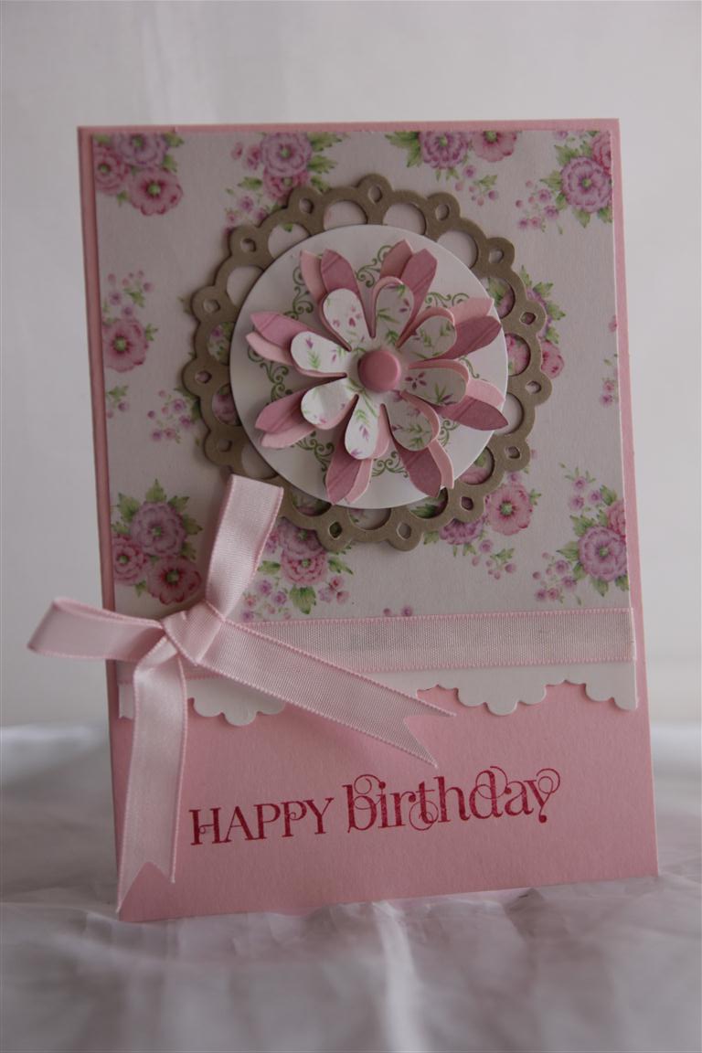 I hope all my american friends had a safe and happy Thanksgiving! Todays card uses some very old paper ( I think it’s daisy D’s) which I found in the back of a cupboard whilst looking for something else..and I gave my cuttlebug a workout as well. Here’s the list – Stampin Up – Pink pirouette, crumbcake, and whisper white cardstock, curly cute sentiment,ribbon , brad,and party blossom die.The rest – a circle punch, and spellbinders Picot edge circles and Classic edges 2 edgeabilities. Speaking of which, a couple of posts down I loved a border that I used but couldn’t remember what it was – well there it is – Spellbinders Edgeabilities classic edges 2 die . So glad I rediscovered it, and will be giving it a workout this weekend!I had a lovely morning teaching a class at Paper flourish,and while I was there I bought some Prismacolor pencils so I will be experimenting with them this weekend too, so plenty to keep me busy! Til tomorrow…