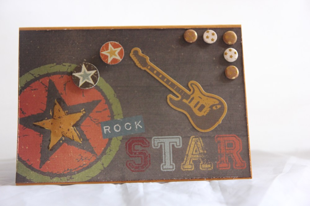 This is number 6 in my simple stories awesome series, and I have quite a few more to show so after tomorrows post we will take a short break from them and come back to them at a later date otherwise you are all going to get bored! Here i have used one of the 12 x 12 sheets of patterned paper, and some craftworks cards candii. the guitar is a sticker from the matching sticker sheet. I can’t say it enough this paper is great for those tricky mens cards, and they seem to make themselves! The cardstock is stampin Up more mustard. I went back to work today after a months holidays, so it might be a quiet night in front of the T.V. for me.. Til Tomorrow….