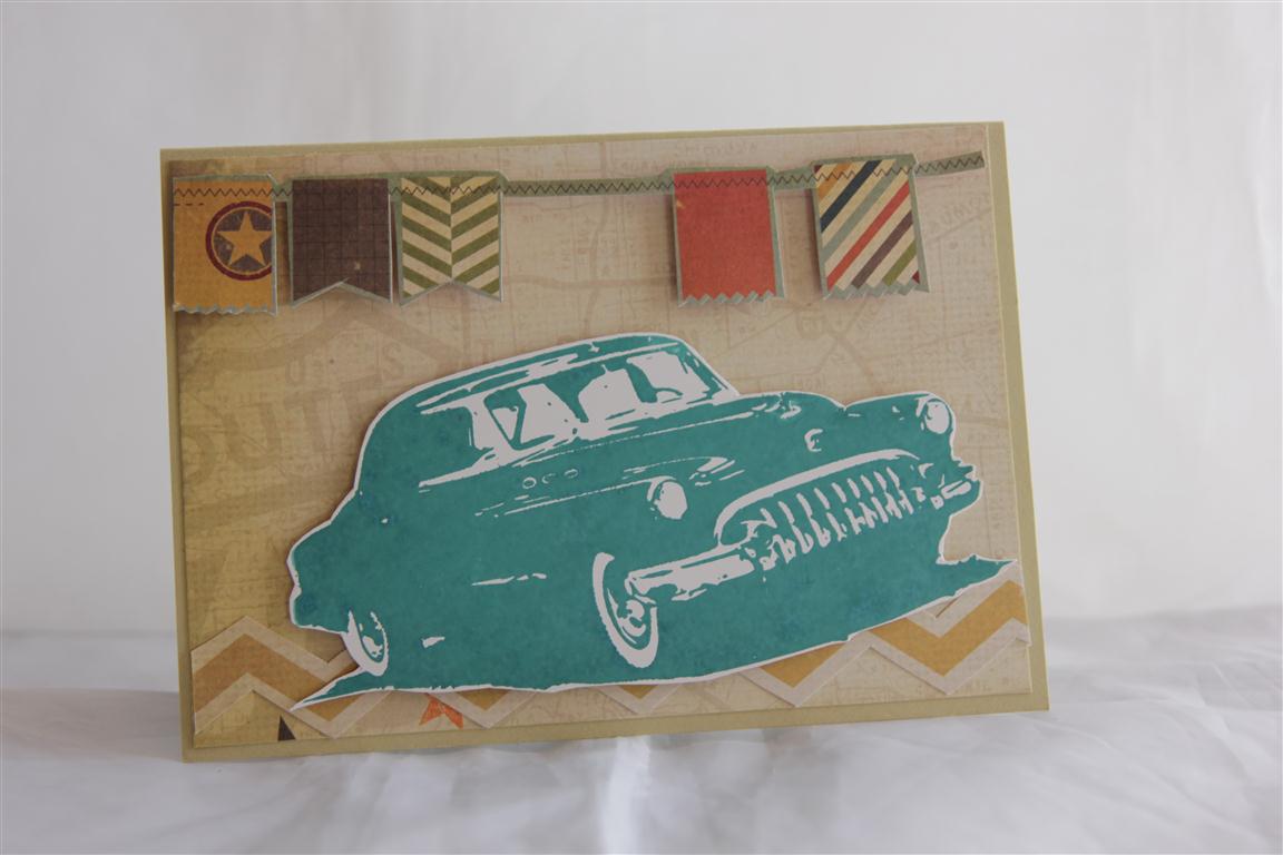 This is the last of my new stamps, it’s a tim holtz stampers anonymous vintage car, and as with the previous stamps, gives a gloriously clear stamped image.I can’t remember what ink I stamped it with – most annoying because I would like to repeat it,if I stumble across it I will update this post!The background papers are Simple Stories Awesome. I can see a definite light at the end of the christmas card tunnel – 2 more very special xmas cards in boxes, then all the Christmas bits and pieces are going away, and I am ready to play with all my new stuff.I have been so patient!Til tomorrow….