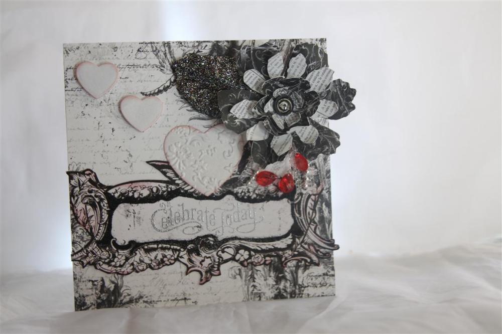Hello, welcome to my new subscriber, and happy valentines day to you all! I leave the house for work earlier than everyone else here, so it wasn’t until I got home that I discovered my card from my husband – he had been in my craft room and made me one from bits and pieces of my stash… I am just surprised he actually remembered! This is the card I made to celebrate today – Bo Bunny Enchanted papers and brad, blingy ribbon, prima leaf, and sizzix Tattered Florals die through my cuttlebug.Tonight I am going to stretch myself , play with lots of new stuff and come up with some new designs – thats the plan anyway.. I might just fall asleep in front of the t.v…… Til tomorrow….