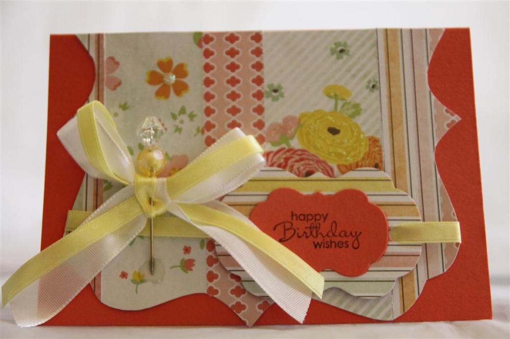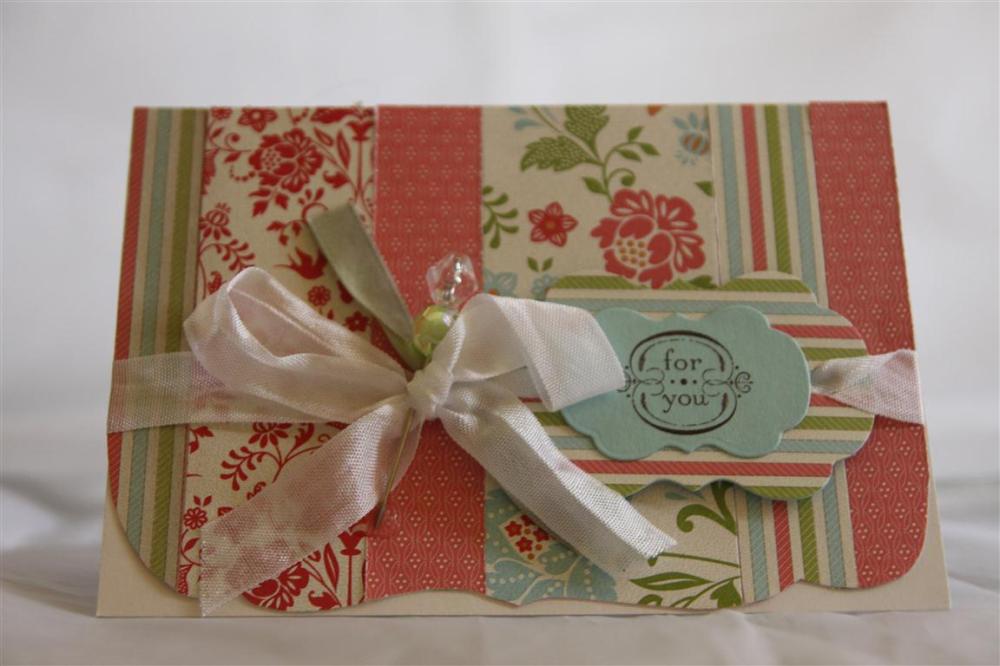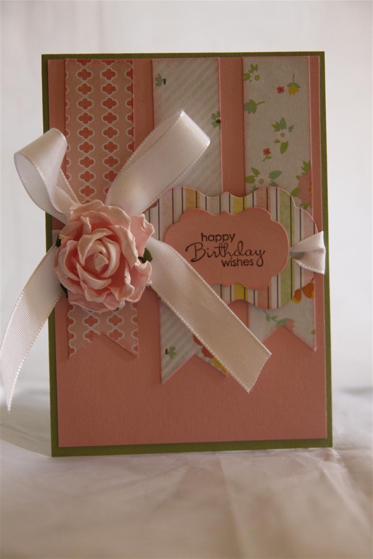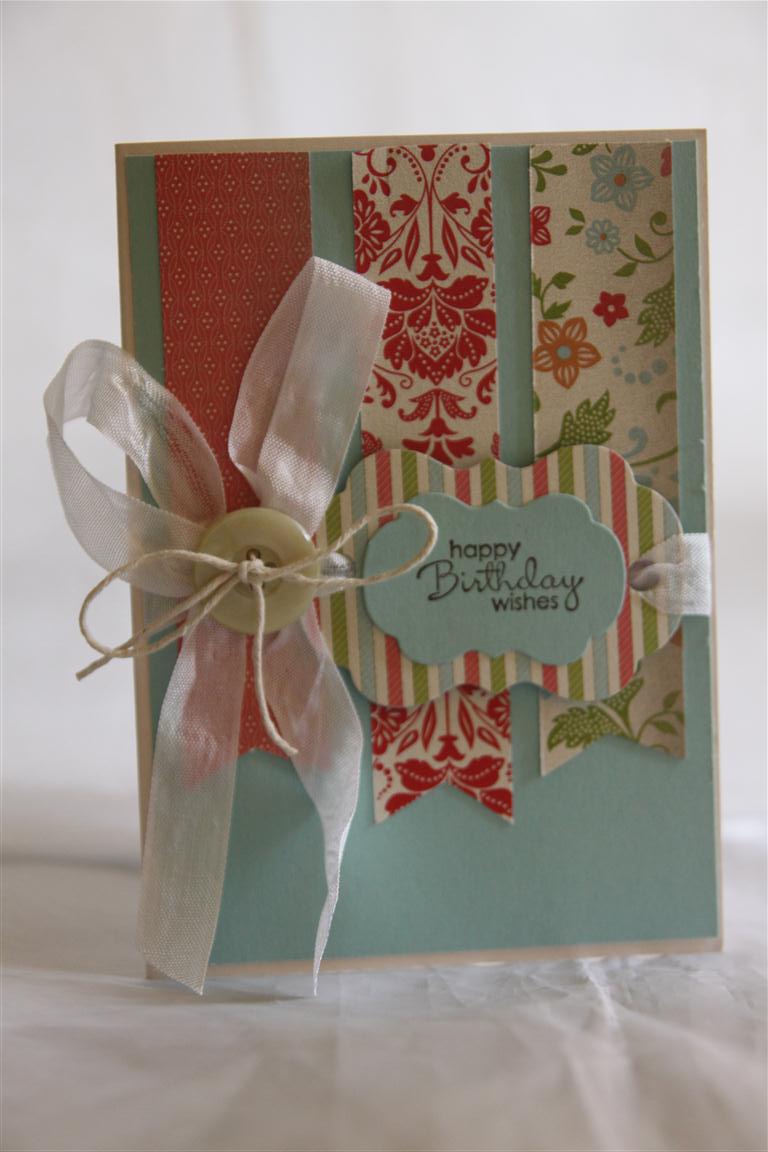 Still working on our sketch series for using scraps, and here i have cut 3 2 cm wide strips at varying lengths and cut a V into the bottom of them, used my labels 14 spellbinders to die cut a couple of labels, layered them together and threaded seam binding through them and tied a big bow. Added a button and twine to finish. The paper is still my 2 pieces of Stampin Up Everyday enchantment, and I matted the design on to Stampin Up Pool party. for the second card I used American crafts neapolitan paper and substituted the seam binding for ribbon, and the button for a kaisercraft flower.here the cardstock is Stampin Up Certainly celery and blushing Bride. I am offf tonight to teach a class over at the Village… so looking forward to it – we always have a good laugh… Til tomorrow…..