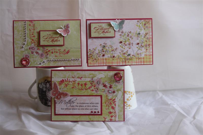 This one is kaisercraft these days papers, Sizzix tattered Florals and 3D Flowers dies, and memory box lord faunterloy die. I added a doily, lace, punched leaves, and the greeting was stamped with a stampin Up stamp – Blessed Mother. I like these colours – they make a change from the usual pinks that i often grab for Mothers day cards – What do you think? I will be found in the card room for a little while tonight, making some boys cards. til tomorrow…..