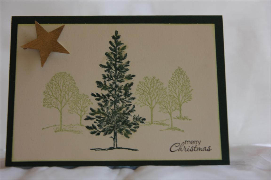Here is a card I made using non christmas stamps that I had in my craft room. The cardstock is stampin up handsome hunter( sadly retired – such a good christmas colour, lucky I stocked up!) and Very vanilla, and the inks used are handsome hunter and certainly celery. I used my versamark pen and perfect pearls Forever Green on the tree at the forefront of the card to give it some sparkle.The little sentiment is from Stampin Up Petite Pairs stamp set. Nathan and I did a youtube video which is here, to show how I achieved the whole tree in front look. Much easier than explaining it in words! Til tomorrow….