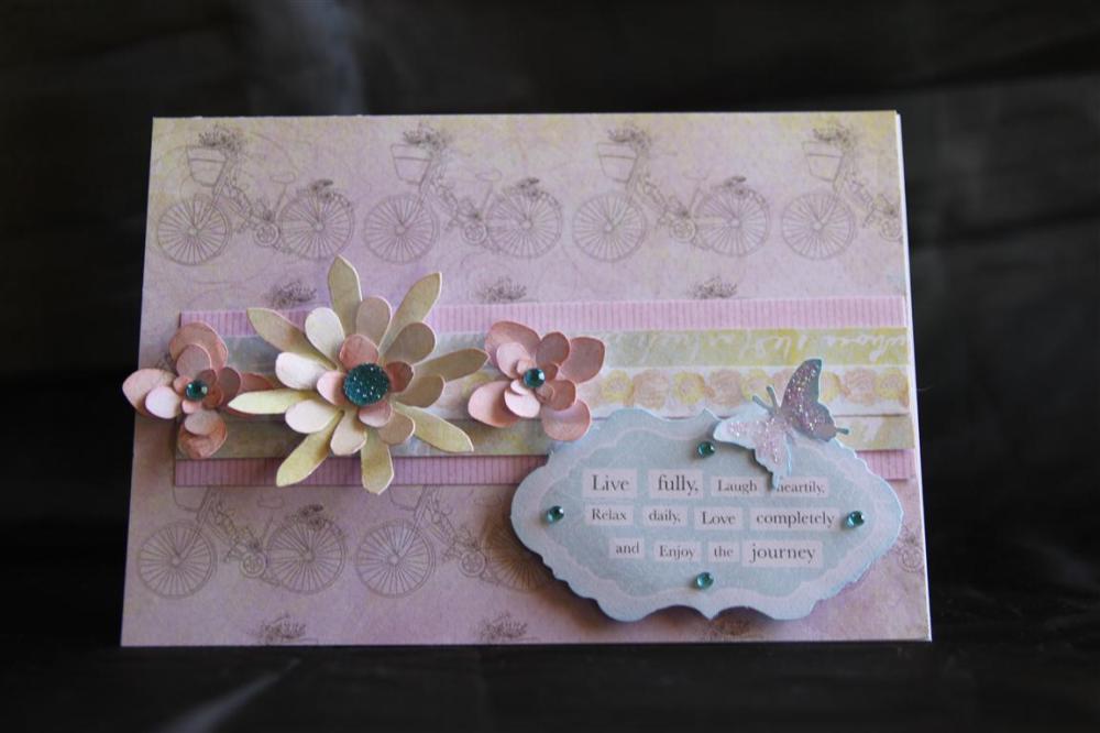 Todays card revisits an older kaisercraft paper collection called pink Gelato. the reason I dug it out was to use with some diecuts I didn’t have when the collection came out, and I have created completely different cards with it this time round. sometimes it doesn’t hurt to hang on to papers! I made the flowers with stampin Up sizzix blossom party die, and I also used my martha stewart butterfly punch. Til tomorrow….