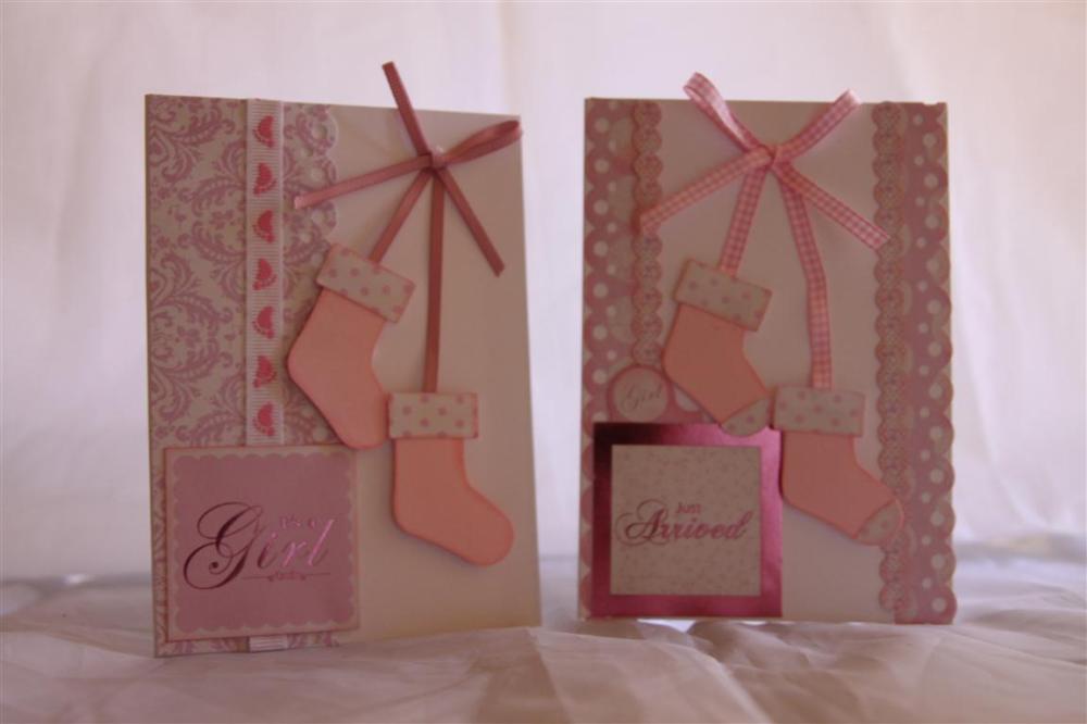 O.k. My web master is not here, and my blog is doing strange things – hopefully you will all be able to see the photo and read my bit – I packed up all my xmas card making bits and pieces, and as I had my Stampin up stocking punch in my hand I remembered a card I had seen elsewhere which used said punch as baby bootees, so here is my take on it…I have used Kaisercraft Lullaby papers and a Martha Stewart punch, and some ribbon as well.Another hot day here in Adelaide – No crafting tonight , but I must pack my car ready for the market tomorrow, Til tomorrow….