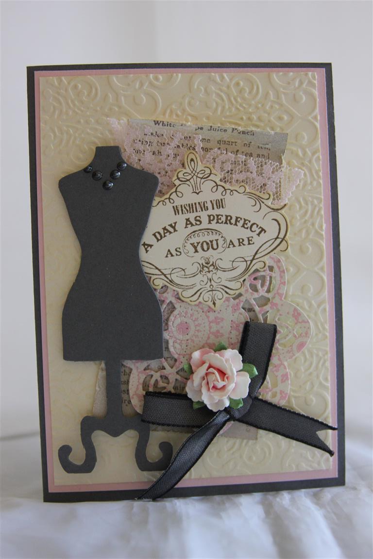 This is the last card using Tea for two designer paper ( stampin Up) for just now, and here, I have used very vanilla, basic grey and pink pirouette cardstock, ( embossed the vanilla with Stampin Up lacy Brocade embossing folder) and a couple of dies – spellbinders D-lites medallion four, and stampin up Dress up framelits.The sentiment is from my stampin up vintage verses set, and I added lace, ribbon,liquid pearls and a prima flower to finish.Today I bought up a storm buying lots of new release papers, and tonight I am going to spend some time going through them all, and fussy cutting some of them ready to use. Its still hot here, and it’s not good weather for crafting as the glue dries before you get it where you want it to go! Til tomorrow….
