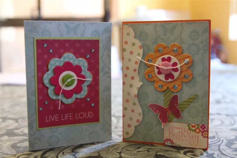 Tonights cards are a couple I made using Kaisercraft Bubblegum Hills collection. I also used the chipboard pieces that are in the same collection, and Stampin Up cardstock.This collection is great for teen girl cards, and the colours are great. I’ve been playing with kaisercrafts new range Lullaby, I only bought the 6″ pad, but the papers in it have all you need to make complete cards, I just added some buttons. I’ve made 6 cards so far, and haven’t even scratched the surface! I love pads like this – such value for money. It may be a little while before I get them photoed and posted, I have a backlog of photos to post – I must have been a bit creative lately!Til tomorrow…..