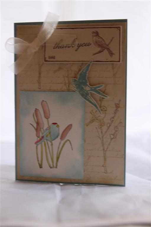 When I stamp – I stamp! I have used quite a few different stamp sets on this card. First I stamped the script -( Stamp it) onto ivory confetti stampin up cardstock, and over stamped it with a stamp from Oxford Impressions – Nature collection. The coloured image is a stampin up stamp from the Every Moment set, and the tag is a stamp from Oxford Impressions Nature set. I stamped the main image onto stampin up watercolour card and coloured using my ink pads and an aquapainter – my favourite way of colouring.The cardstock is all stampin up . Til tomorrow…..Â