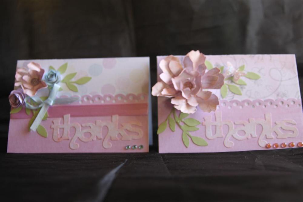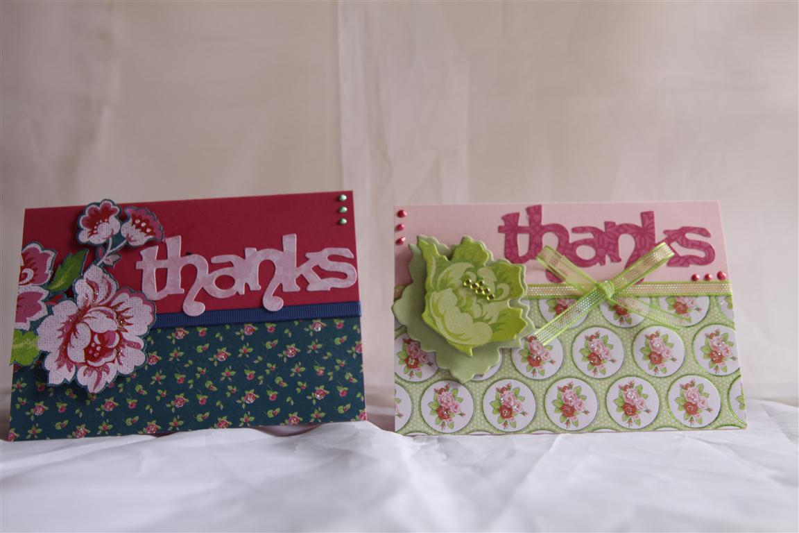 I combined my new sizzix thanks die ( which works well through my cuttlebug) with my new Miss nellie papers to make these two cards. The paper and flower chipboard are both kaisercraft Miss Nellie collection, and i used some liquid pearls and a bit of ribbaon as well. Tomorrow different new paper! quick post as its shopping night tonight, til tomorrow…..