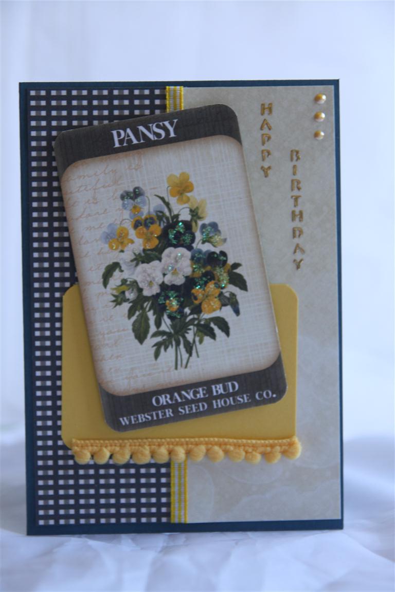 Spring is here, and we have been enjoying glorious weather, so today I thought I would post a spring Birthday card. The patterned paper is websters pages farmers Market, and I have used stampin Up cardstock – Not quite Navy, and daffodil Delight trim. I also used some liquid pearls and a bit of ribbon. I’m off now to dig that paper out again and make some more spring inspired cards! Til tomorrow….